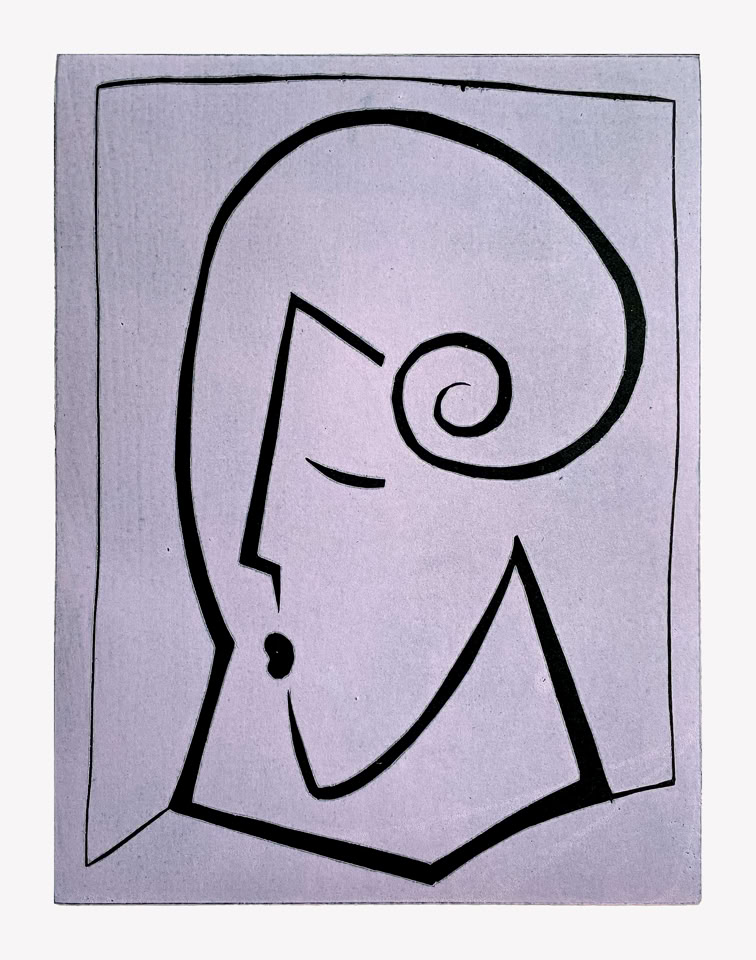 Ein weitere Herausforderung ist die Reduzierung der Linien, um so sparsam wie möglich mit wenigen Schwüngen ausdrucksstarke Portraits zu drucken. Man erkennt oftmals nicht, ob es sich um zwei Gesichter handelt oder um eine Person, im Dialog mit sich selbst. In Farbholzschnitt Eins-Zwei-Drei entdeckt man zeitweilig bis zu drei Gesichter.